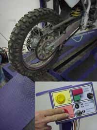 Bike has to be put over the dyno and to hold the front wheel correctly so