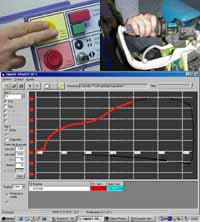 the computer again. Thus a single person is able to work with the dyno. Tests