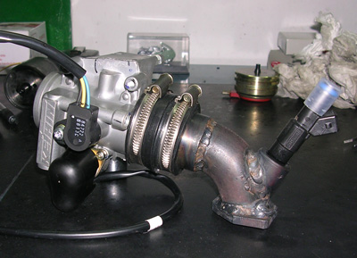 The SportDevices fuel injection has been simplified and down-sized considerably compared with any other programmable fuel injection to allow for application to a small motorcycle.
